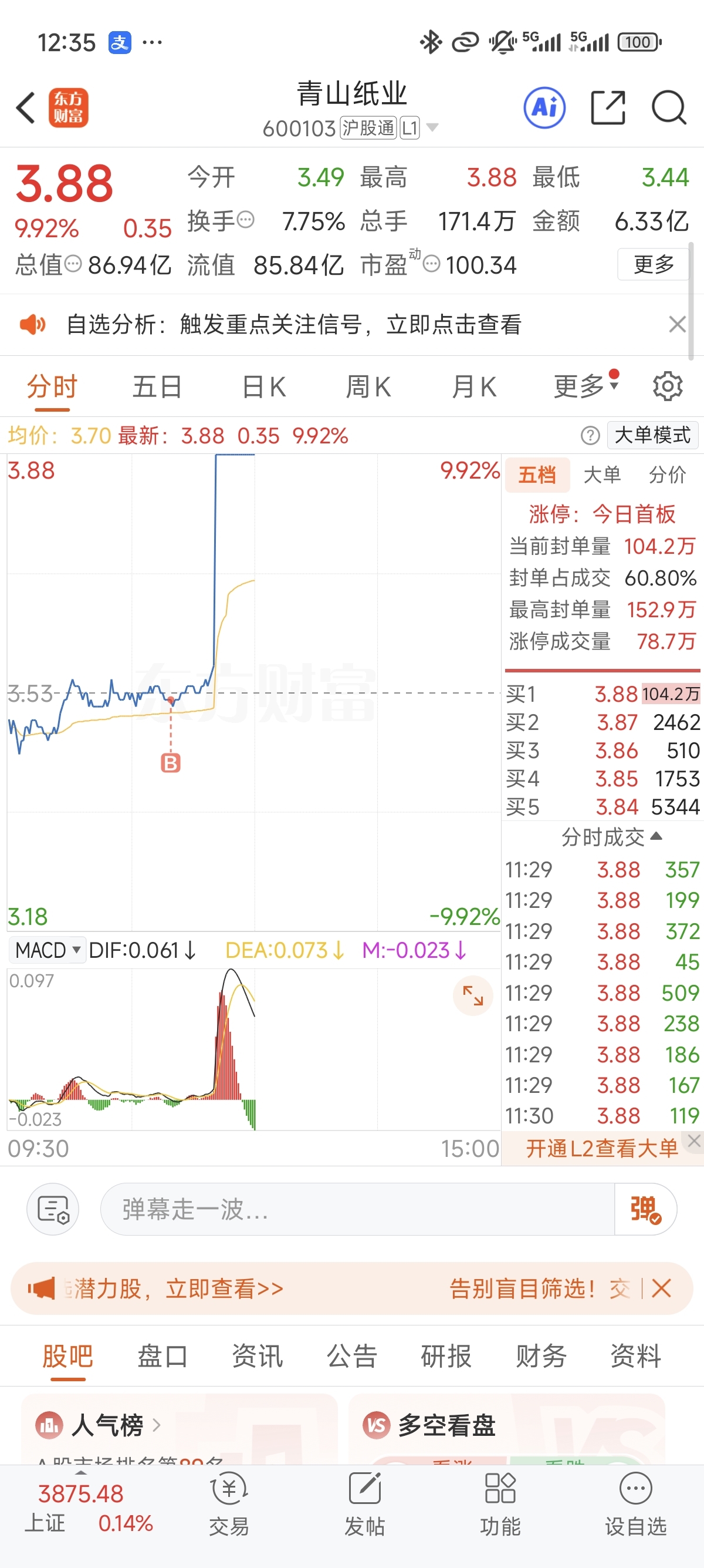 $青山纸业(SH600103)$ 嗯…怎么回事