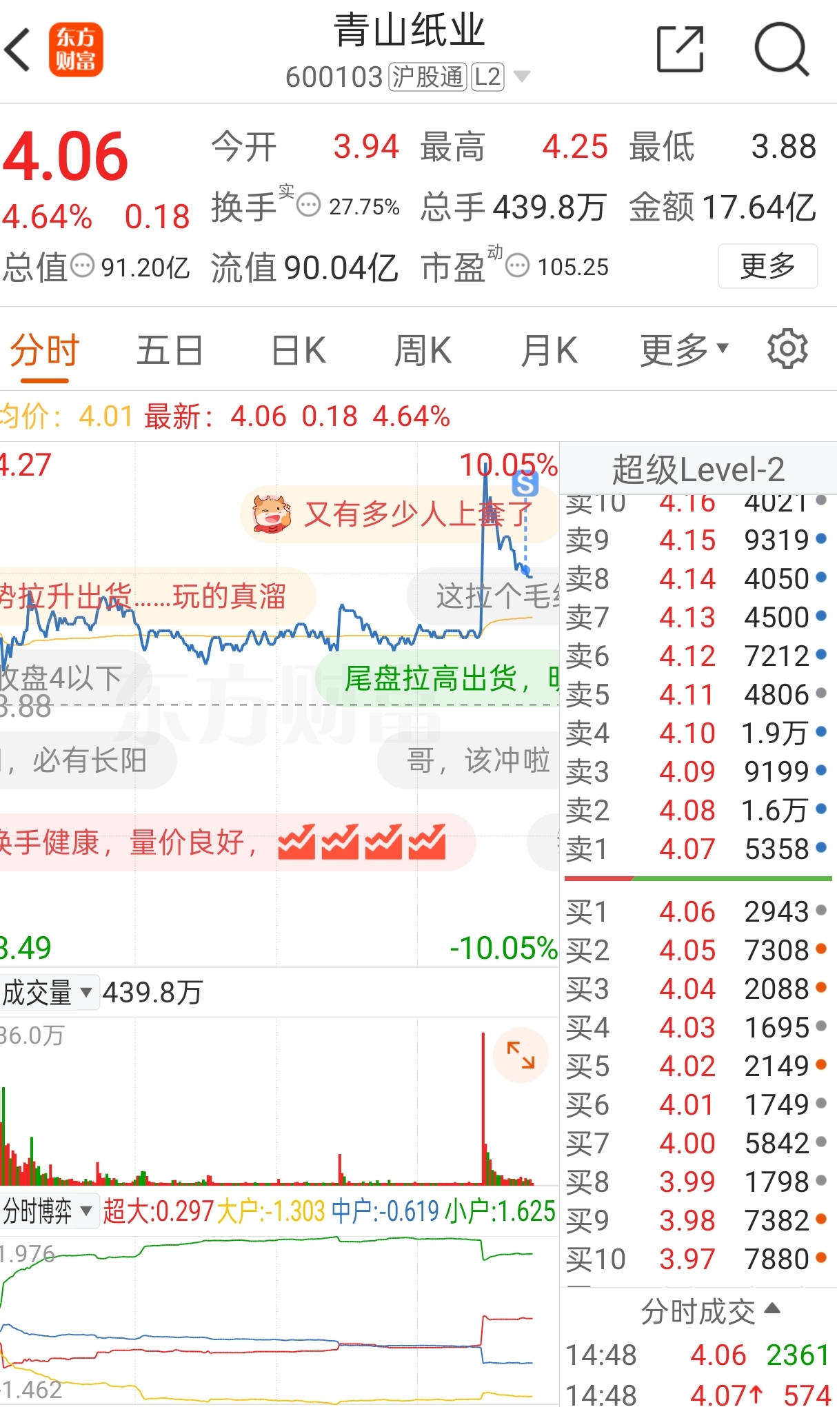 $青山纸业(SH600103)$ 今天不拉,明天三天两板多好,尾盘一拉被爆头吸跟风盘,先出一半。