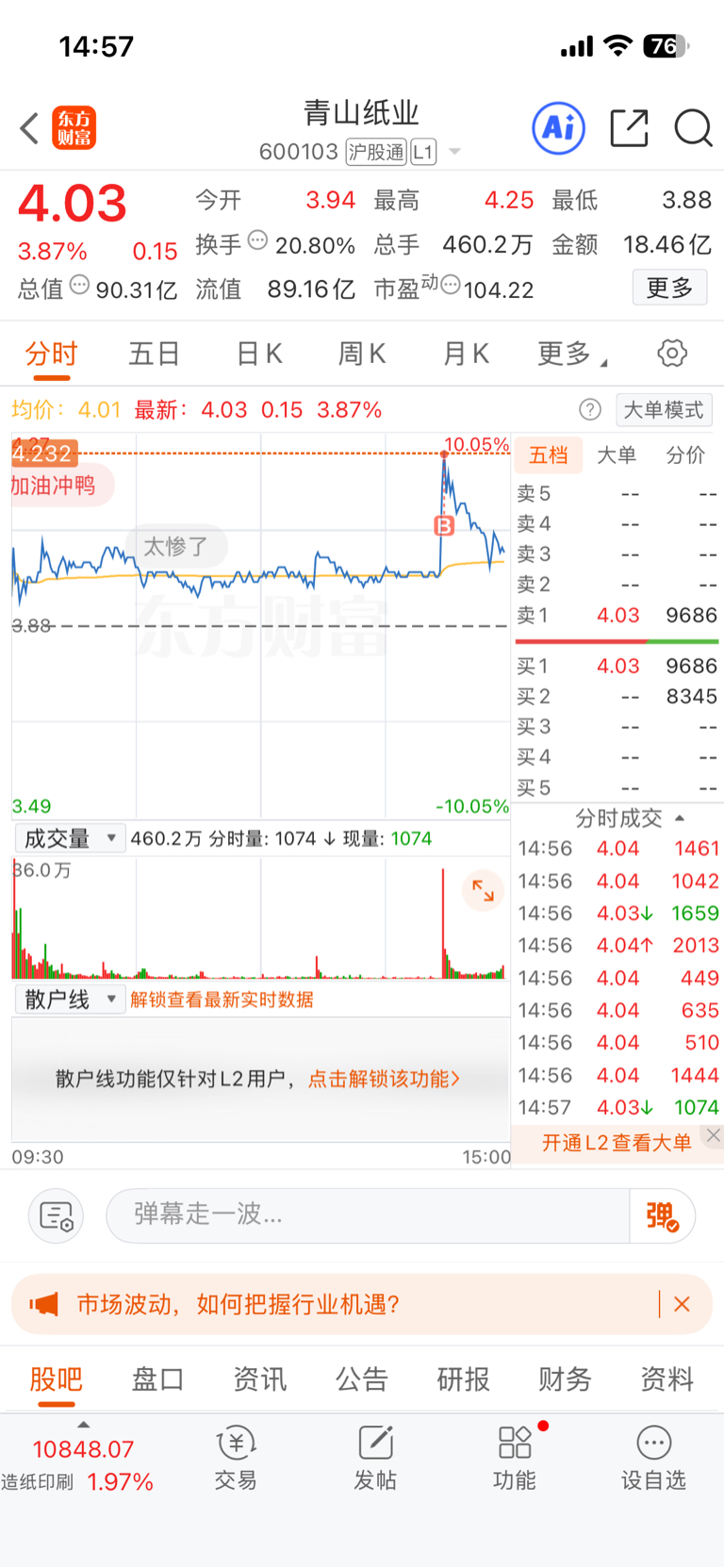 $青山纸业(SH600103)$ 来一次套一次
