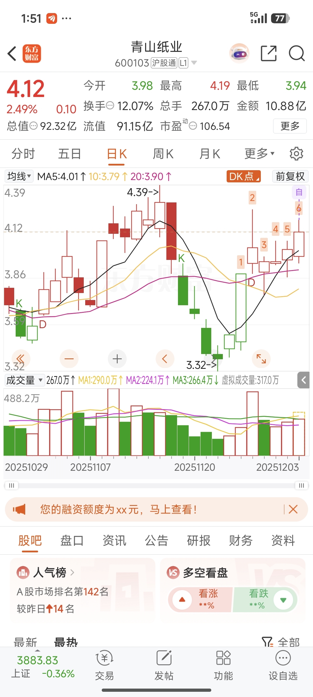 $青山纸业(SH600103)$ 和上一个涨停一模一样的走法 明天小心了