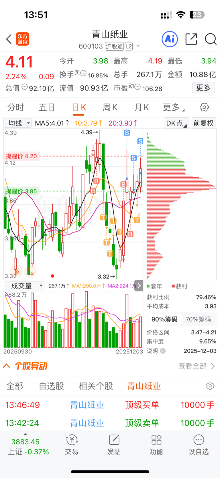 $青山纸业(SH600103)$ 唉,走了
