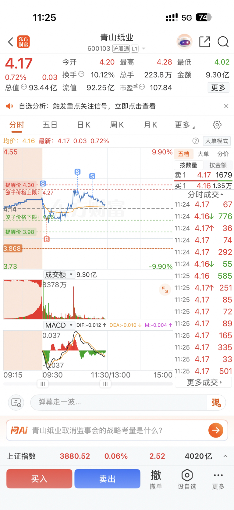 $青山纸业(SH600103)$ 不绿 我都看不起你