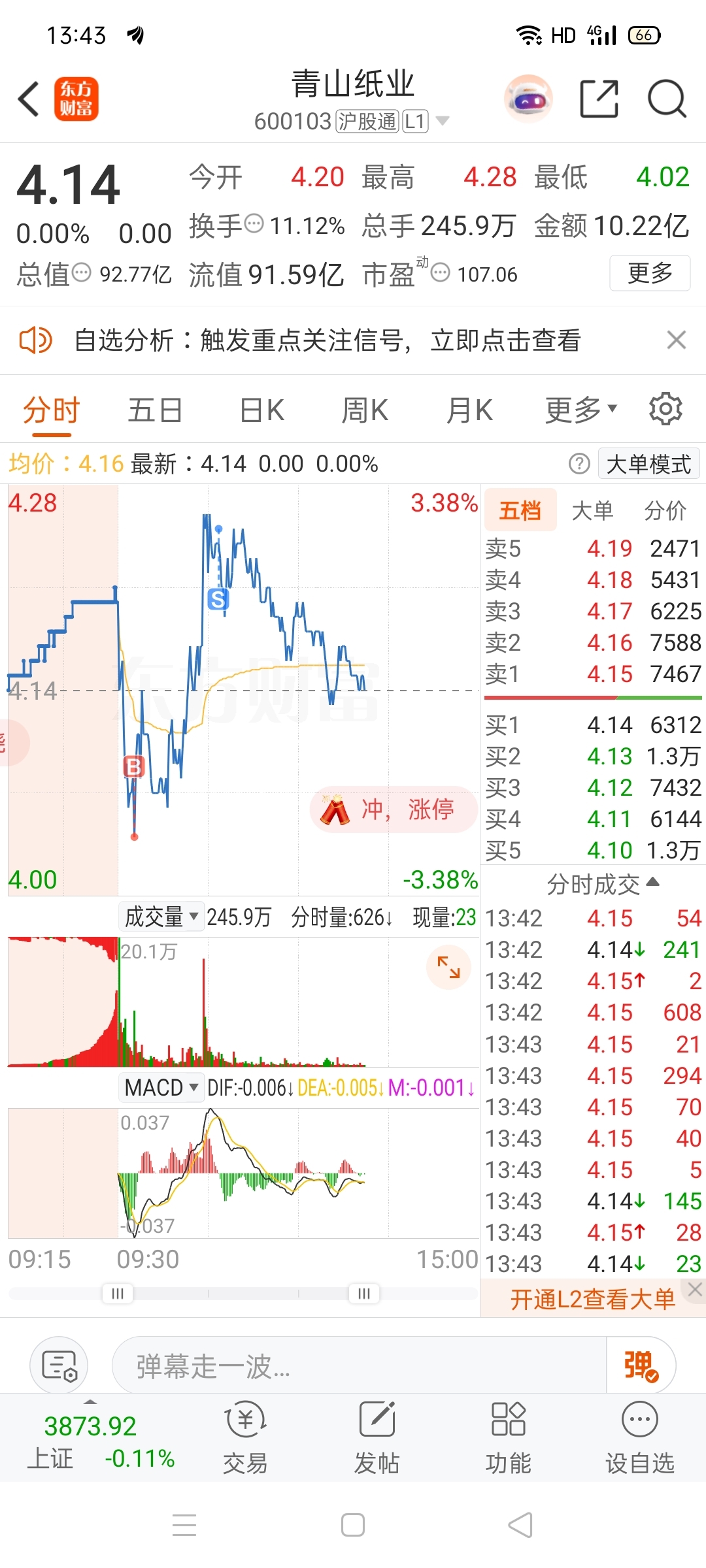 $青山纸业(SH600103)$ 赶紧下来,我加点仓位