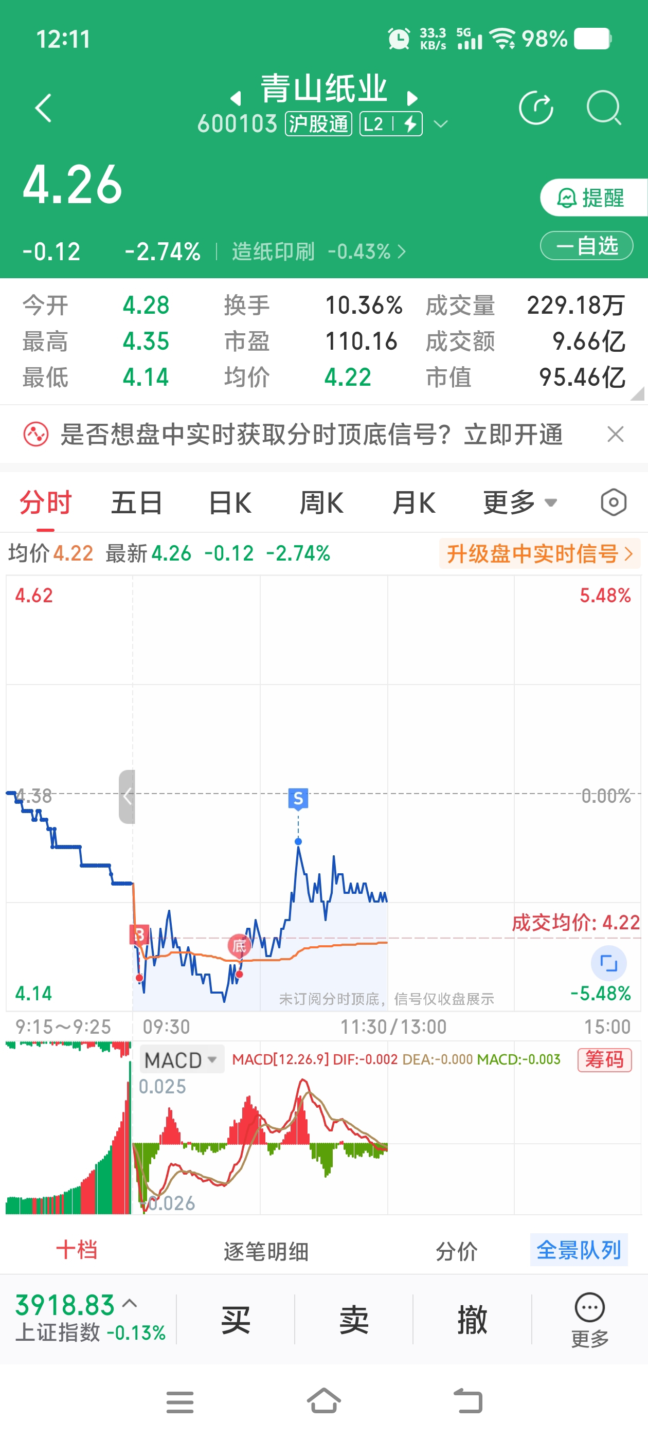 $青山纸业(SH600103)$ 差一点今天要亏钱了,还好t了四个点