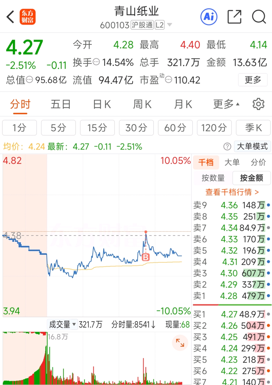 $青山纸业(SH600103)$ 为什么总能精准抄顶