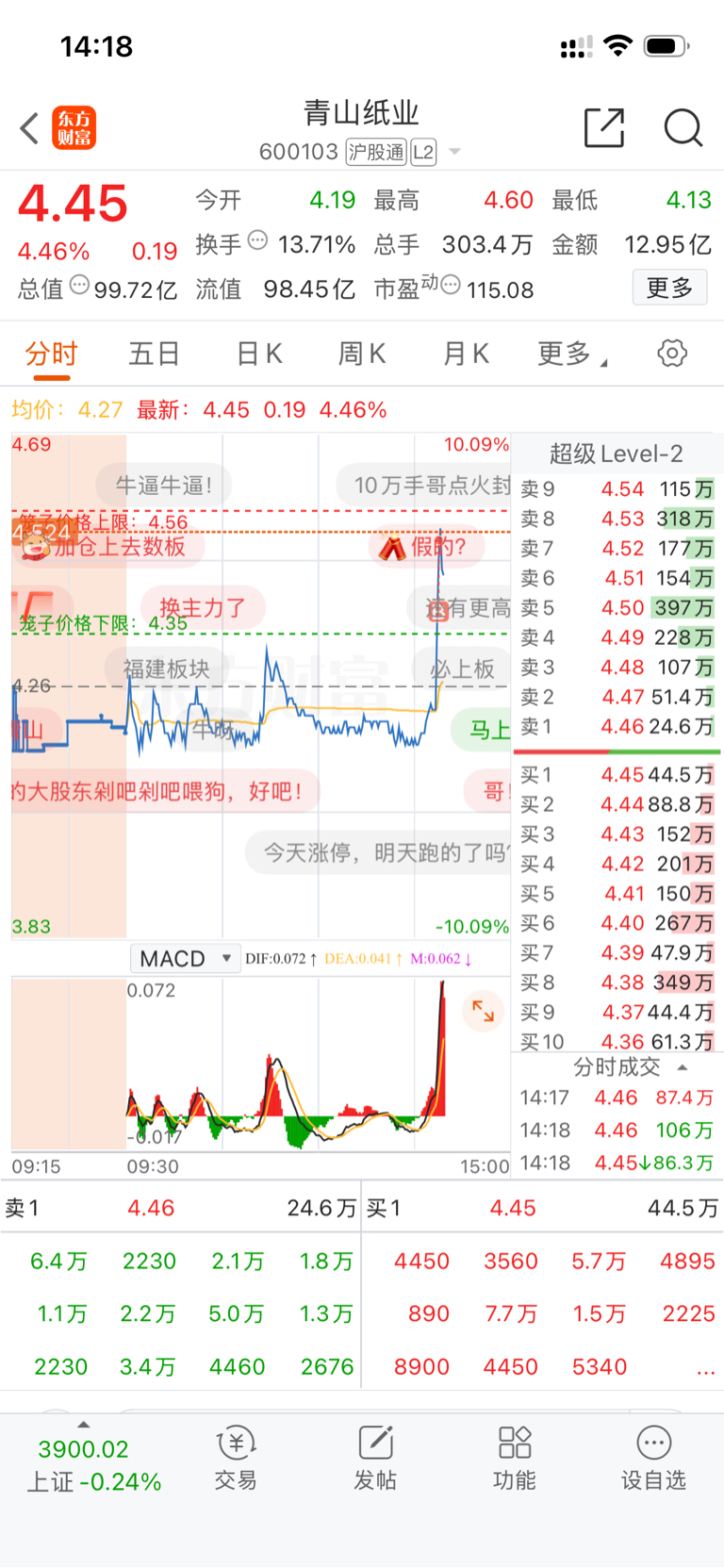 $青山纸业(SH600103)$ 为什么啊,诶,全仓6个点追的