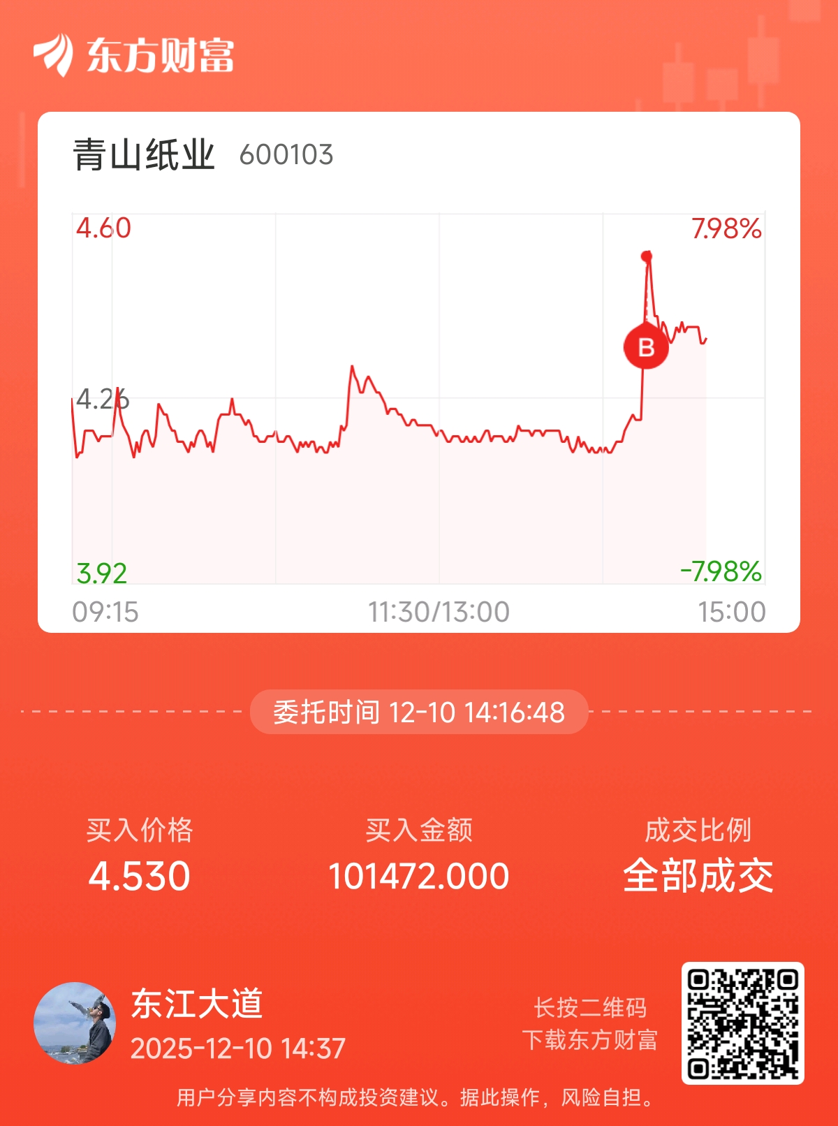 温馨提示: 1.根据《证券法》规定,禁止编造、传播虚假信息或者误导性信息,扰乱证券市场;2.用户在本社区发表的所有资料、言论等仅代表个人观点,与本网站立场无关,不对您构成任何投资建议。用户应基于自己的独立判断,自行决定证券投资并承担相应风险。《东方财富社区管理规定》