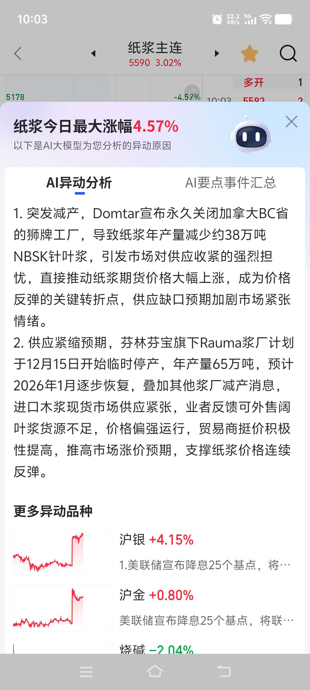 $青山纸业(SH600103)$ 纸浆期货大涨,你却跌