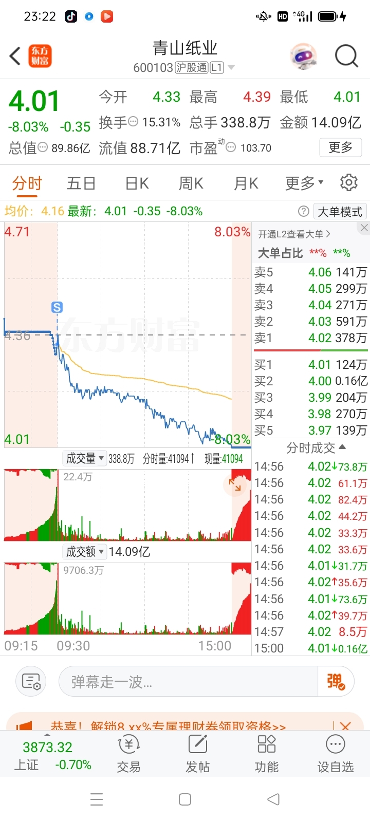 $青山纸业(SH600103)$