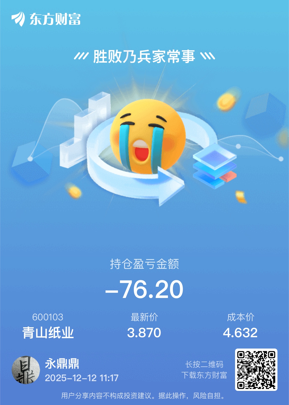 $青山纸业(SH600103)$ 下午两点前补仓