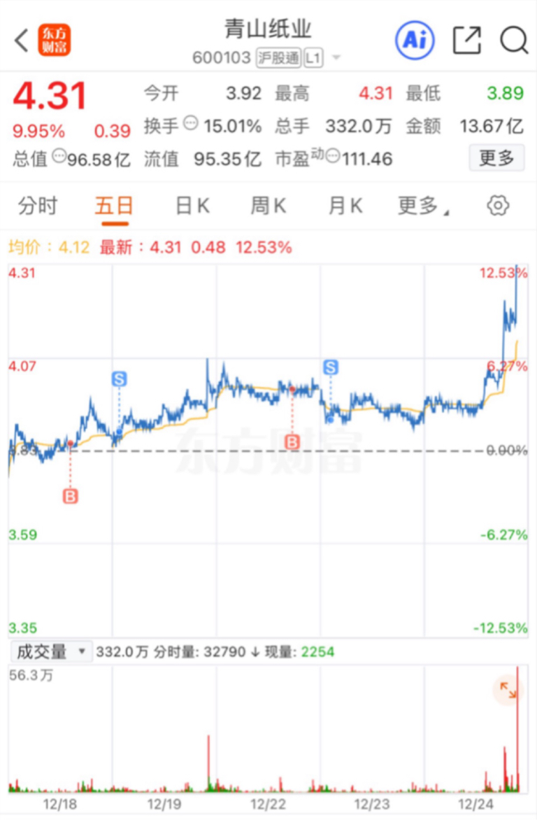 $青山纸业(SH600103)$ 玩我呢