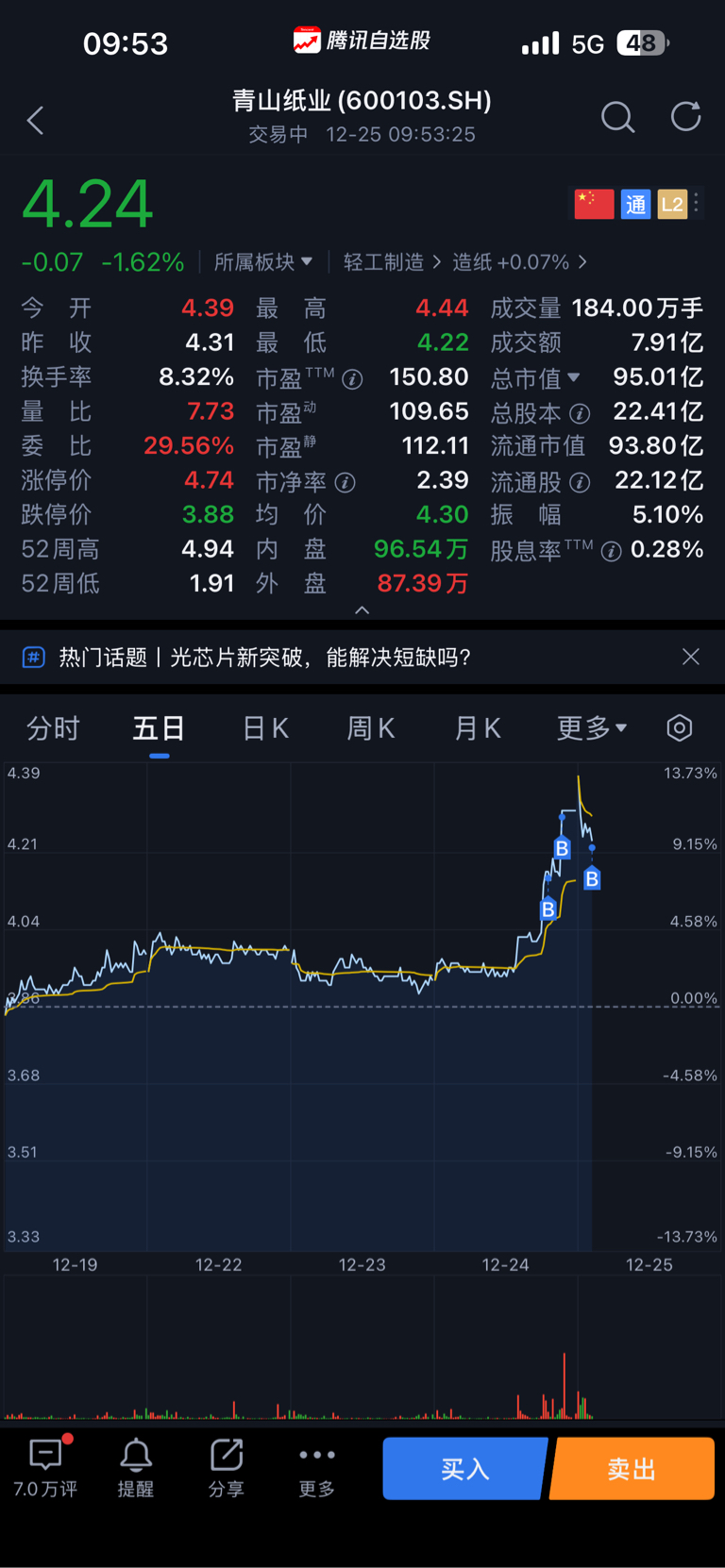 $青山纸业(SH600103)$ 起不来就死,草