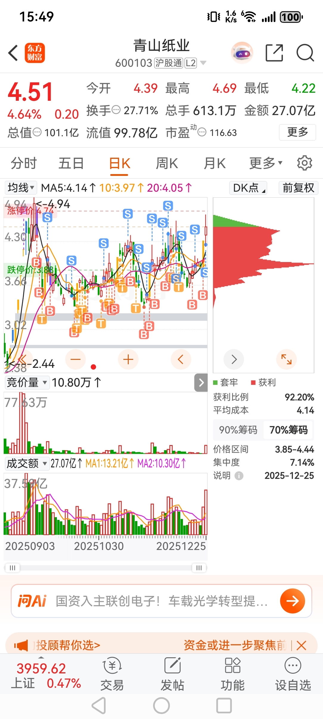 $青山纸业(SH600103)$ 成本都T成负20了,等下来在进。