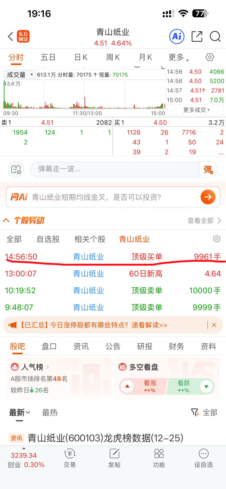 $青山纸业(SH600103)$ 这是救救 61 路?六一大哥来了?