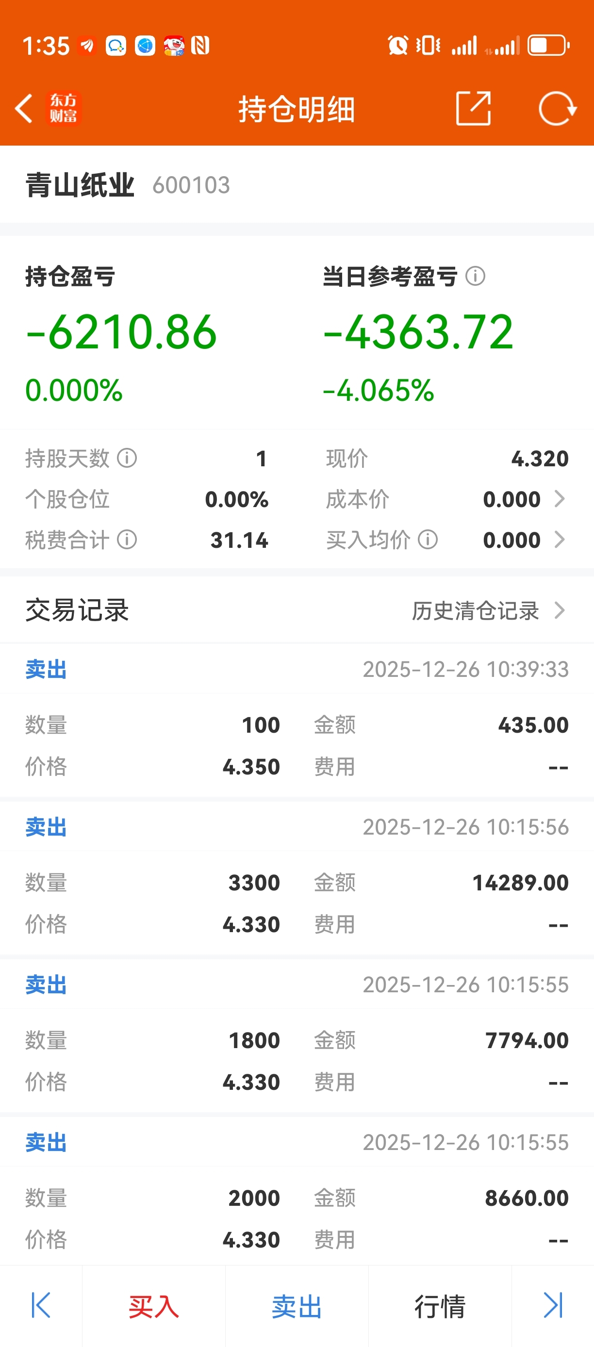 $青山纸业(SH600103)$ 我炒股生涯的耻辱。