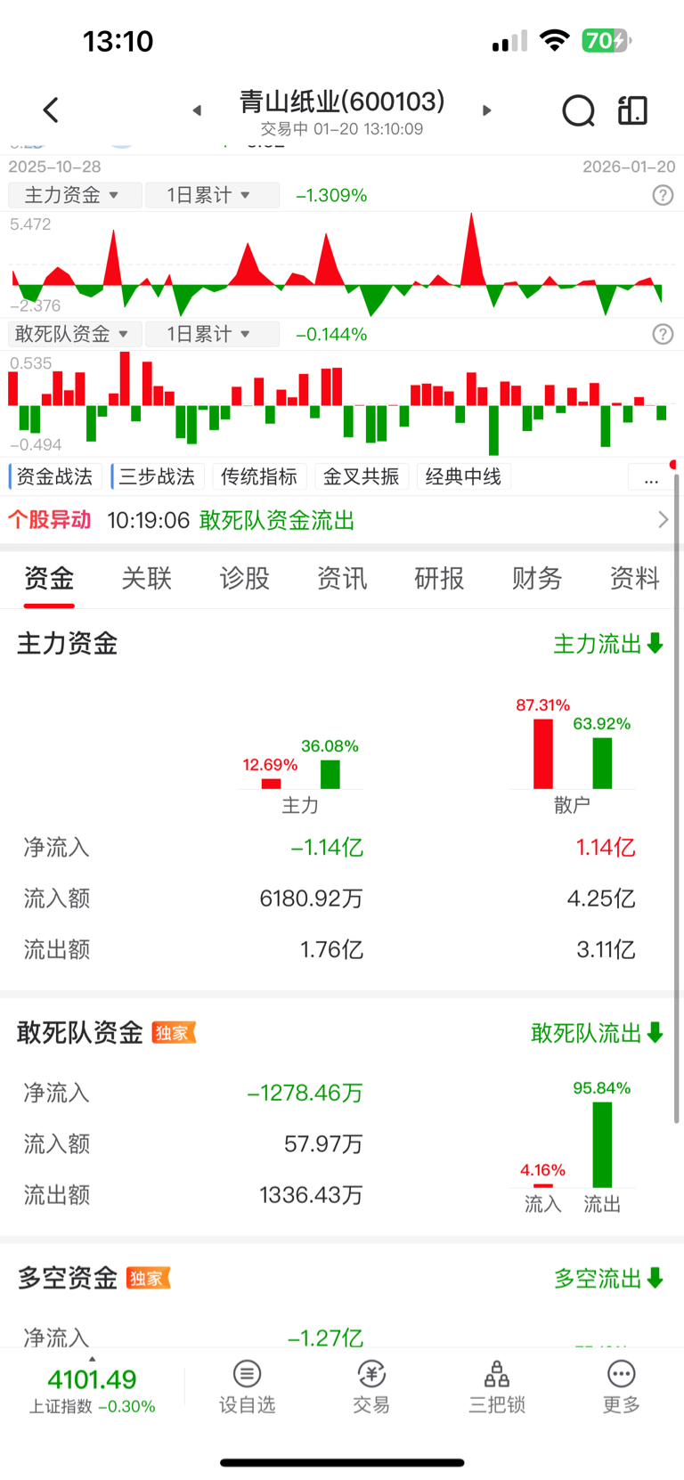 $青山纸业(SH600103)$ 看这资金都知道会砸...筹码直接给散户