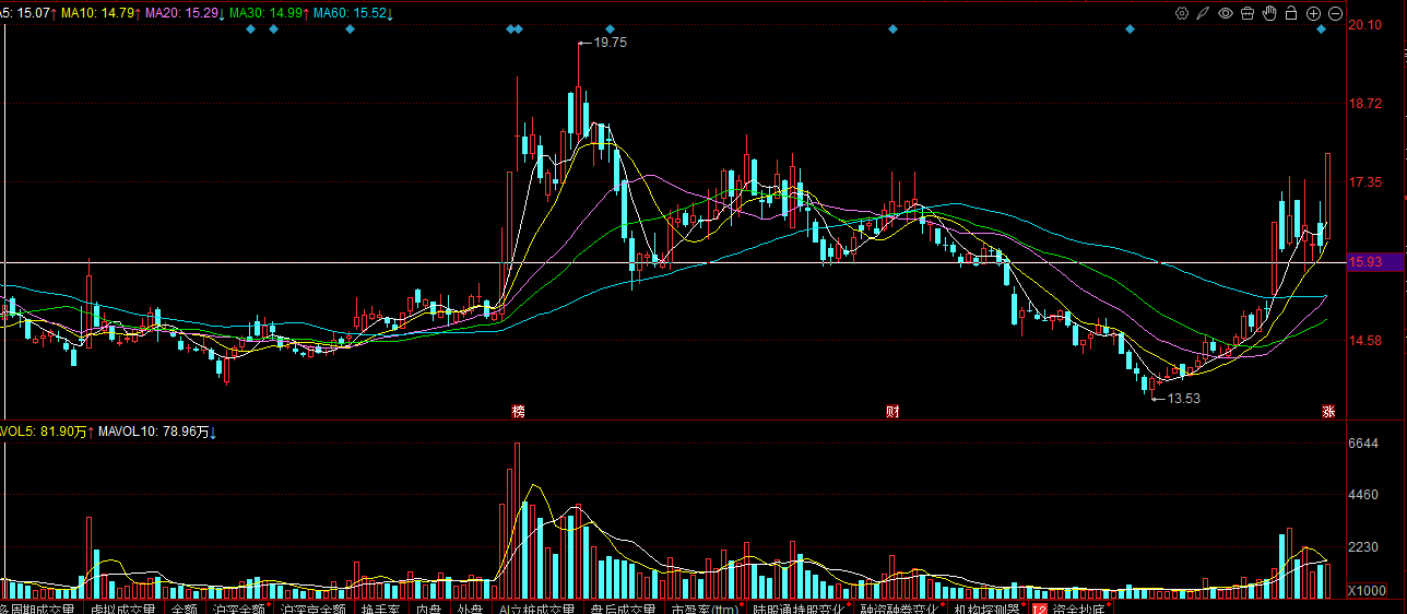 华天科技002185:封装测试业务受益于半导体行业复苏,华天科技在先进封装领域技术积累深厚,适配 AI 芯片、汽车电子等高端需求,题材还是不错的,周三的涨停质量还是非常高的,现在股价也是突破了前期十月份的压力位,最近四个交易日的成交量也是放量明显,说明市场中的做多意愿较强,多方还是占据着优势的。从月线来看,现在位置也不算太高,一月份市场中如果能有较好的接力目标价是站上十八。