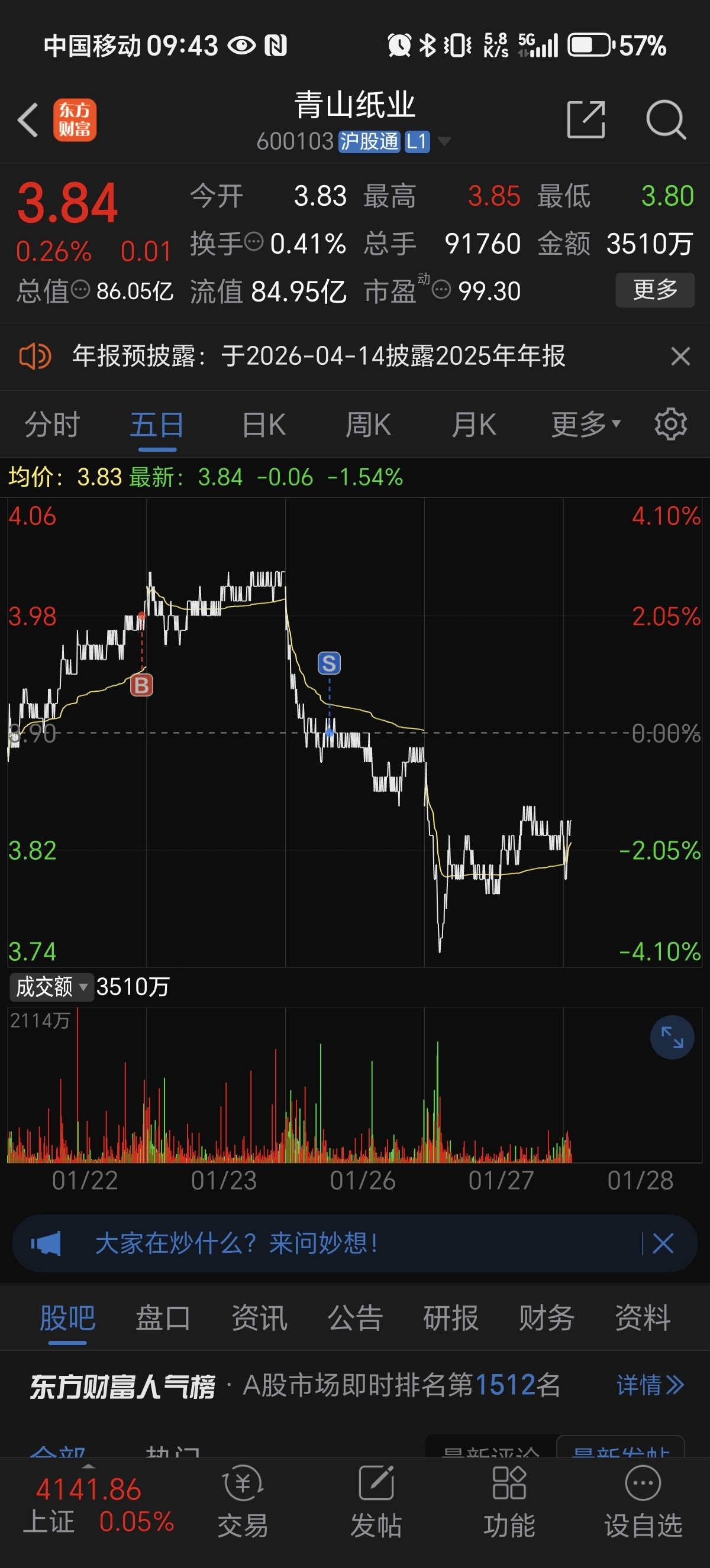 $青山纸业(SH600103)$ 是非成败转头空。青山依旧在,几度夕阳红?