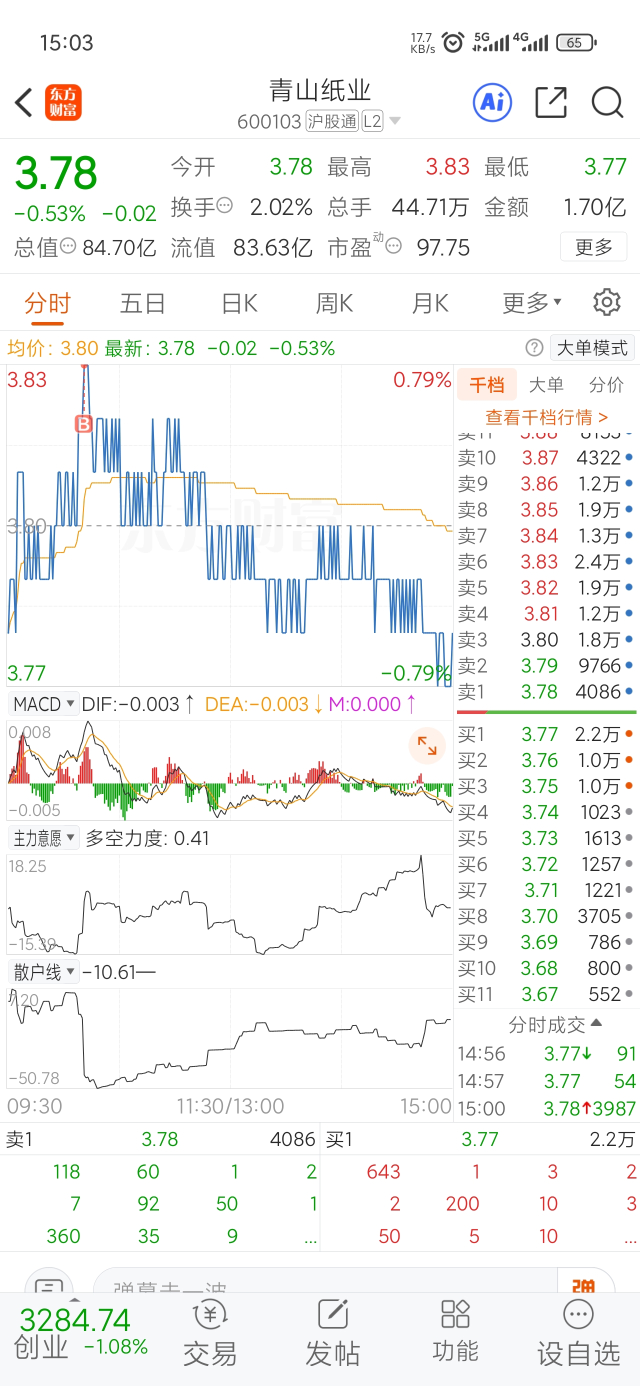 $青山纸业(SH600103)$ 为什么会跌因为我买了