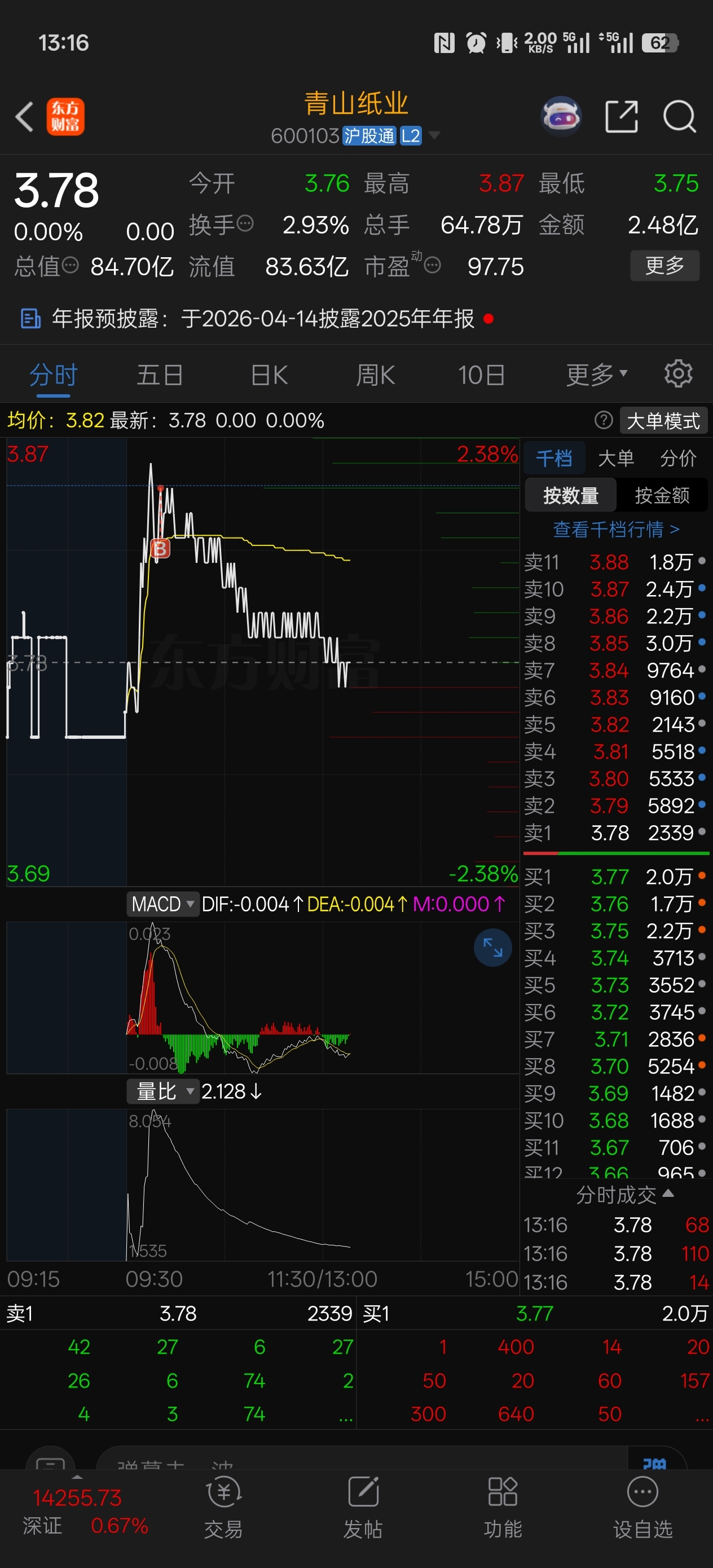 $青山纸业(SH600103)$ 不要这样子嘛,主力大哥不要埋我啊!