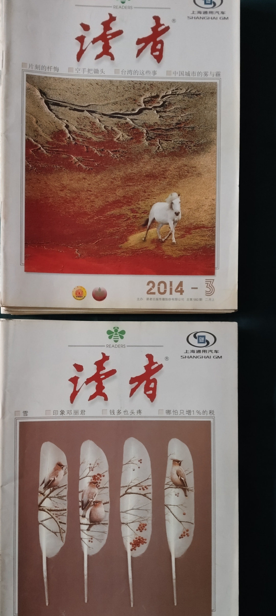 收拾家,找到一些旧《读者》杂志。封皮右上方有上海通用标识,这是上海通用定制版的《