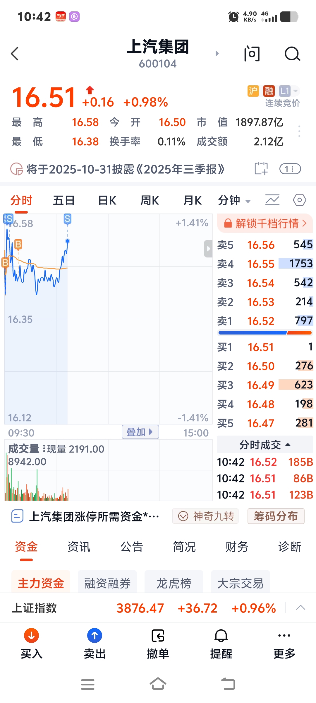 $上汽集团(SH600104)$ 一毛钱,几分钱也照T不误,不T真没办法玩
