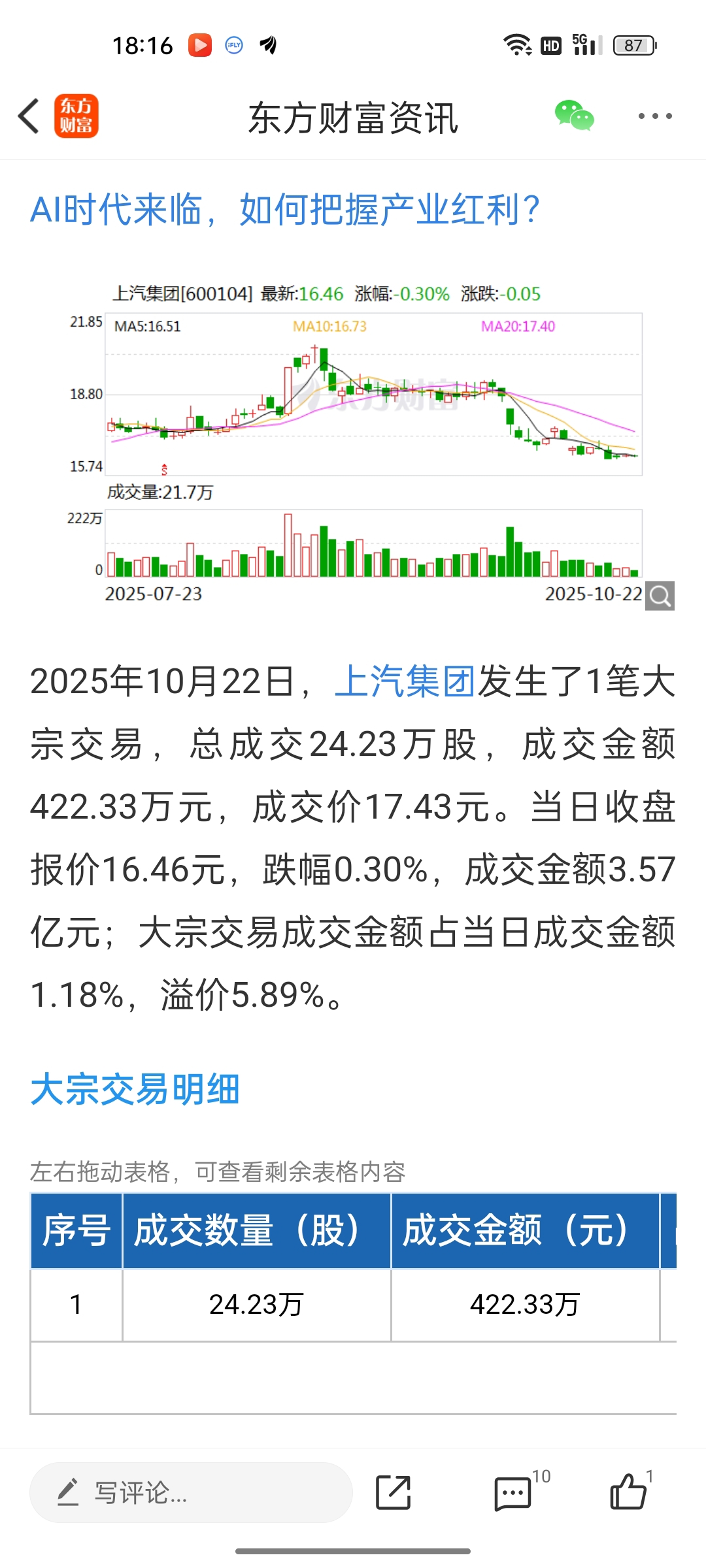 $上汽集团(SH600104)$ 有希望了,有人出高价钱来买了。明天加仓干