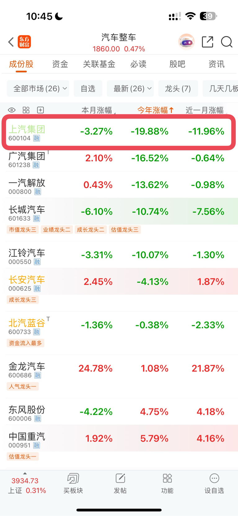 可怜的上汽,在公司基本面转型成功和业绩增长的情况下,居然是整车板块的倒数第一。没