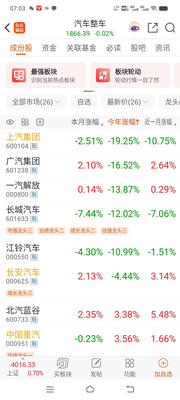 $上汽集团(SH600104)$ 今年上汽集团为什么在汽车板块跌幅第一,营收利润逐月增加,9月份产销重回汽车行业第一位!比亏损的广汽集团跌的还多。预期向好却领跌汽车板块为什么?也许散户看好则机构们砸盘,散户不看好的黑心主力才拉涨!清仓了也不能释怀、明明业绩上涨,怎么会不涨反跌?不附合逻辑!祝大家好运