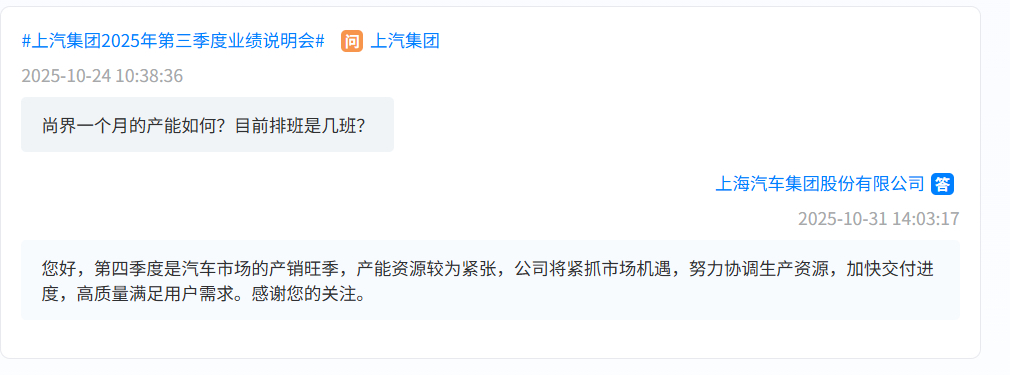 $上汽集团(SH600104)$ 尚界产能如何?