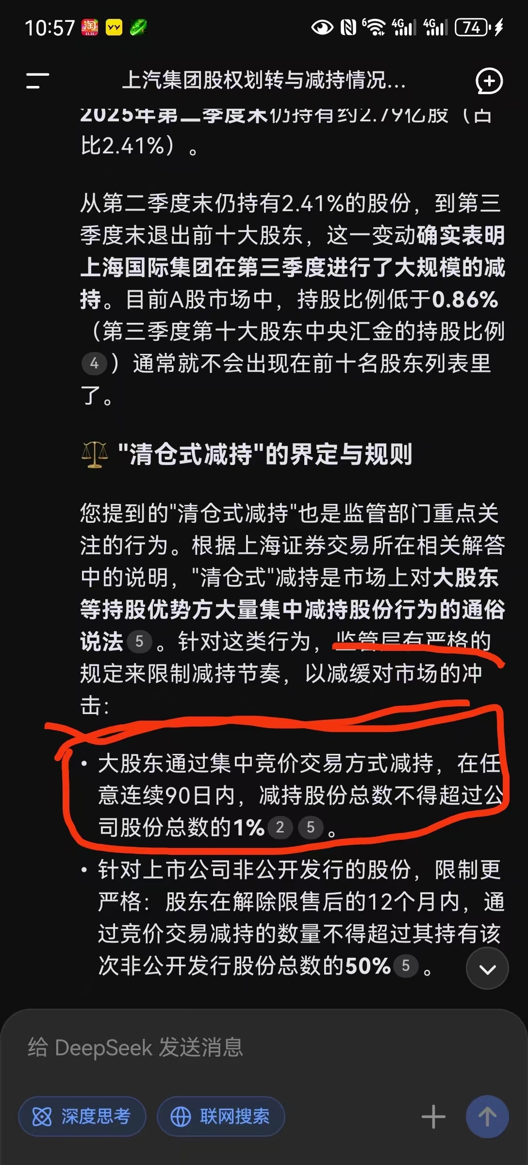呵呵,变相减持只是拿股民当,清仓式坚持才是目无王法了。中报上海国际还持有2.41%股票,三季报就不在10大股东之列了,说明至少坚持了1.9%的总股本股票。已经违背证券法了