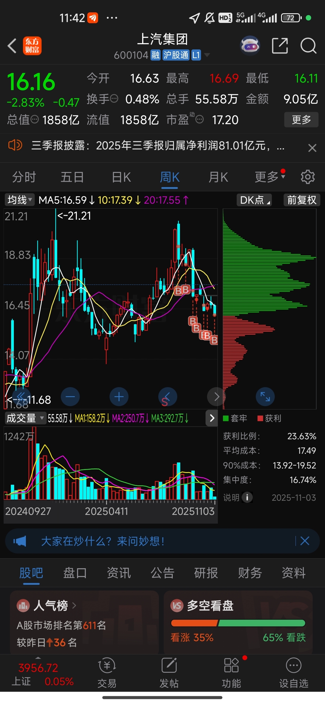 $上汽集团(SH600104)$ 上面的人不割,怎么会涨,套牢的太多了