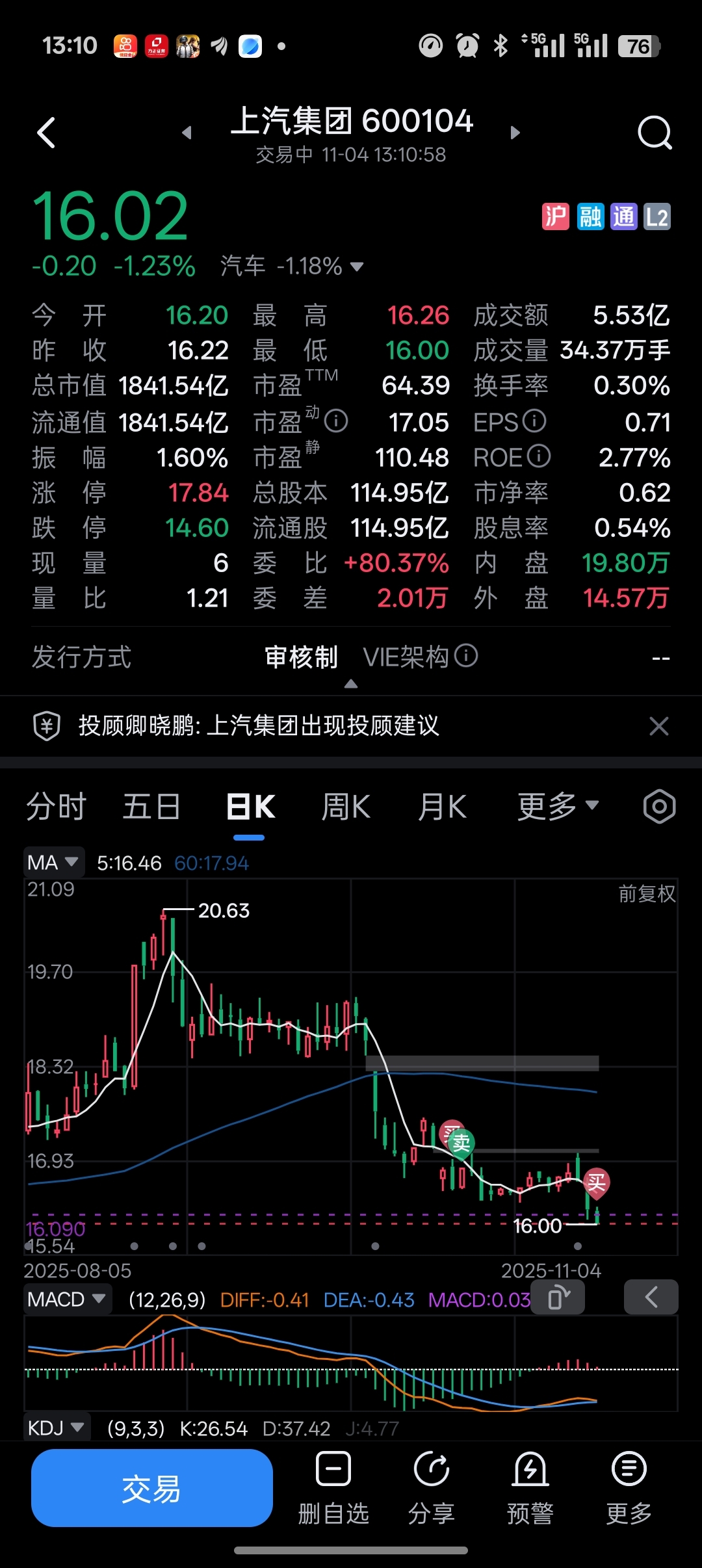 $上汽集团(SH600104)$ 兄弟们 不要怕 我又回来了