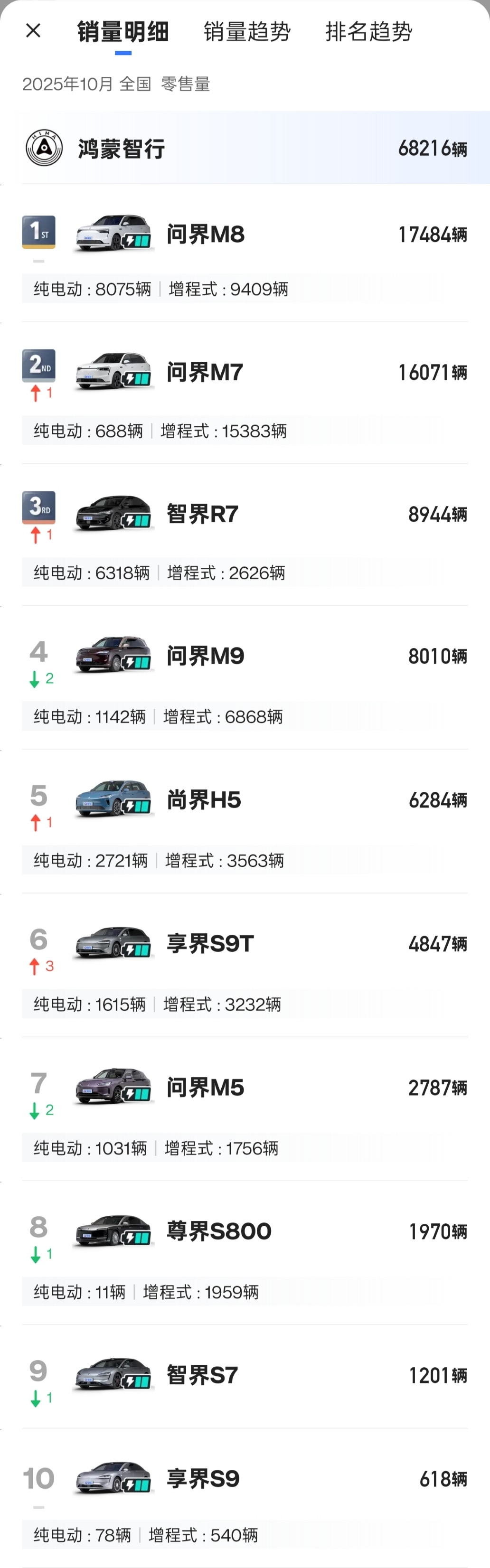 目前尚界H5的销量在鸿蒙智行月销排名第5,不知道最高能达到第几呢?