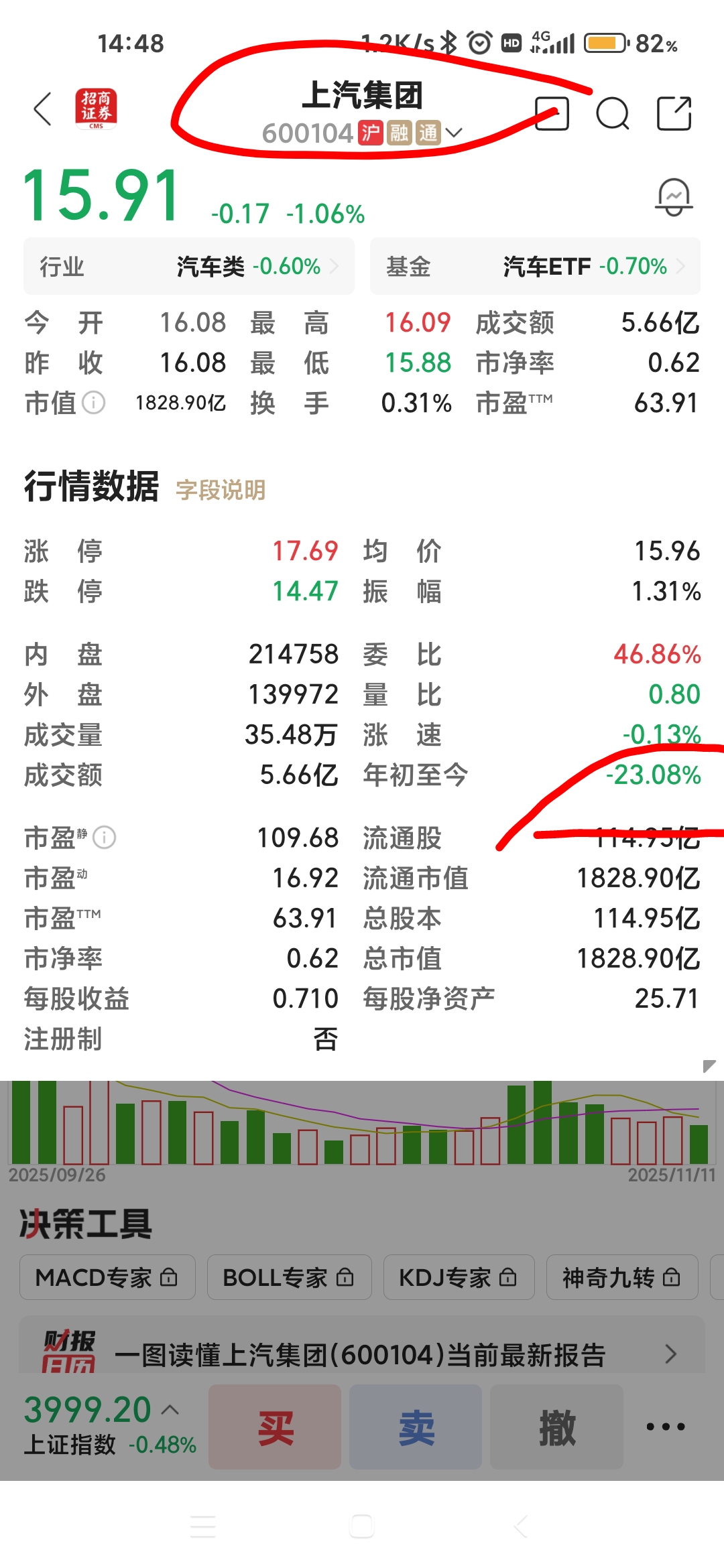 上汽太牛了!牛市中还可以年内跌足23%!继续维持上汽年内跌超20%的判断不动摇!