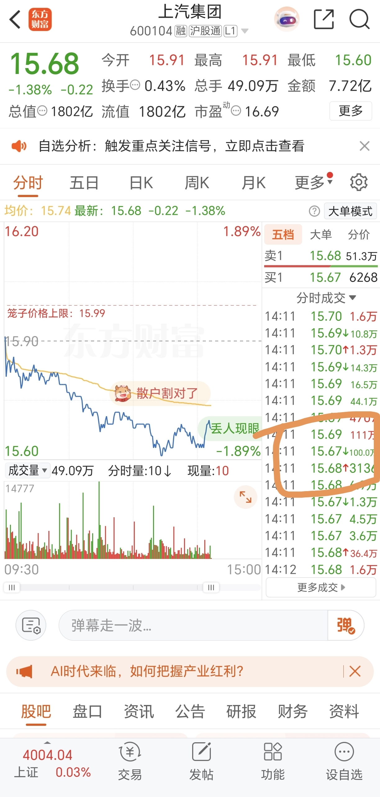 $上汽集团(SH600104)$ 看看,多可恨,这一看就是量化砸盘~