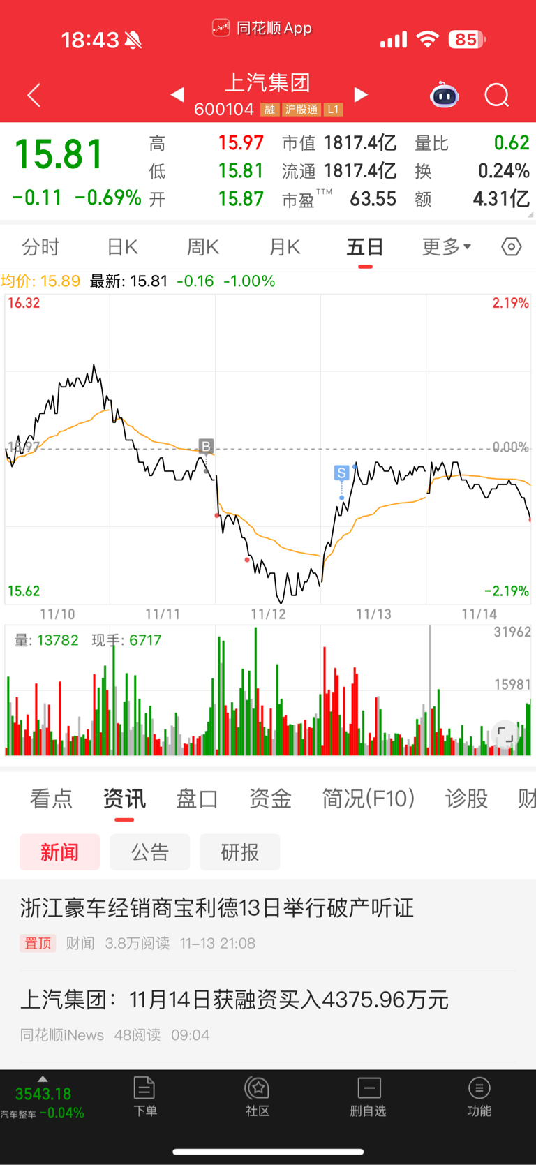 $上汽集团(SH600104)$ 尾盘加了一点点