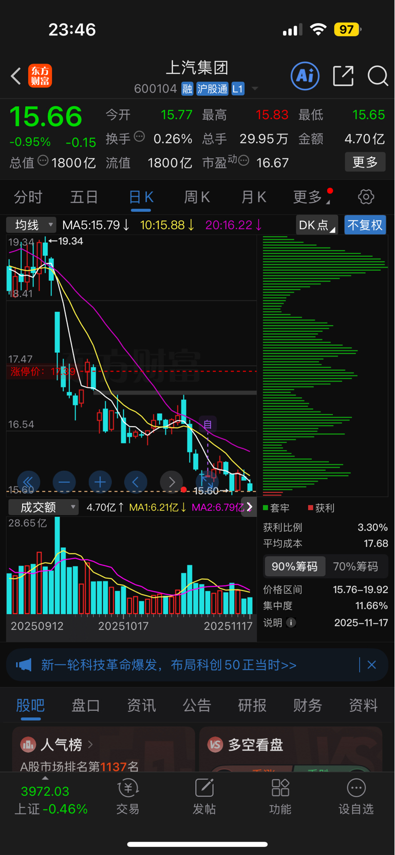 $上汽集团(SH600104)$ 这公司老板脸上好意思吗?K线像是奔st