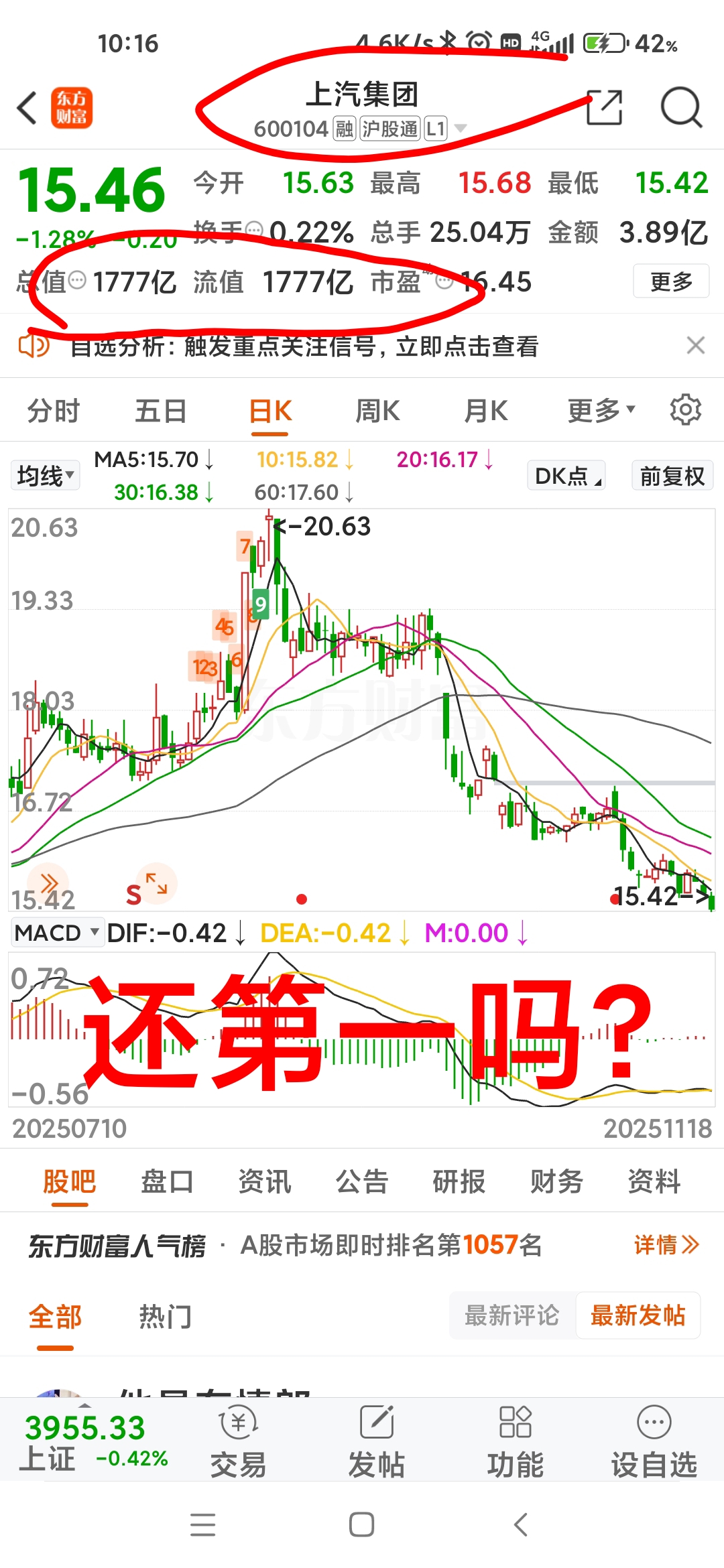 不会做丅的不要来上汽了!现在上汽市值跌破1800亿!明年向1500亿奔去!一个赛
