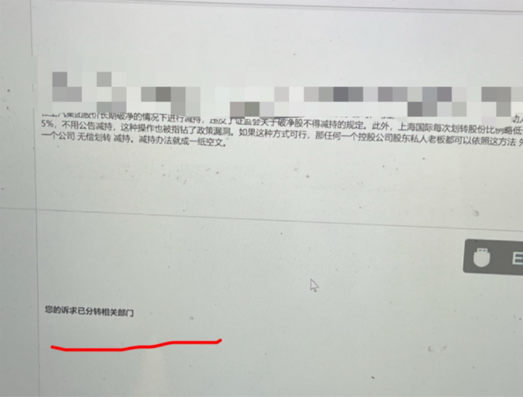 这个是不是已经开始立案调查上海国际违规破尽减持?