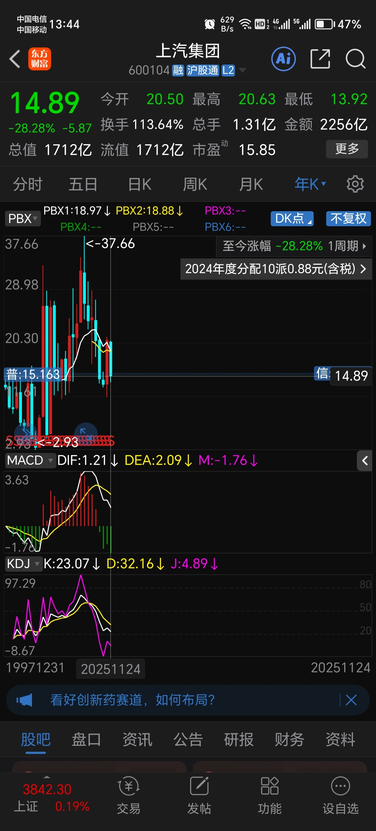 上汽2025跌幅近-30%,看看大盘涨了多少?此消彼长恐怖至极