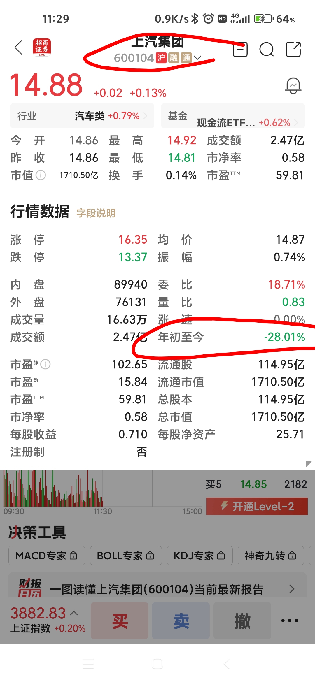 $上汽集团(SH600104)$ 上在牛市里居然能年内跌足28%的!也是无敌于汽车界了!