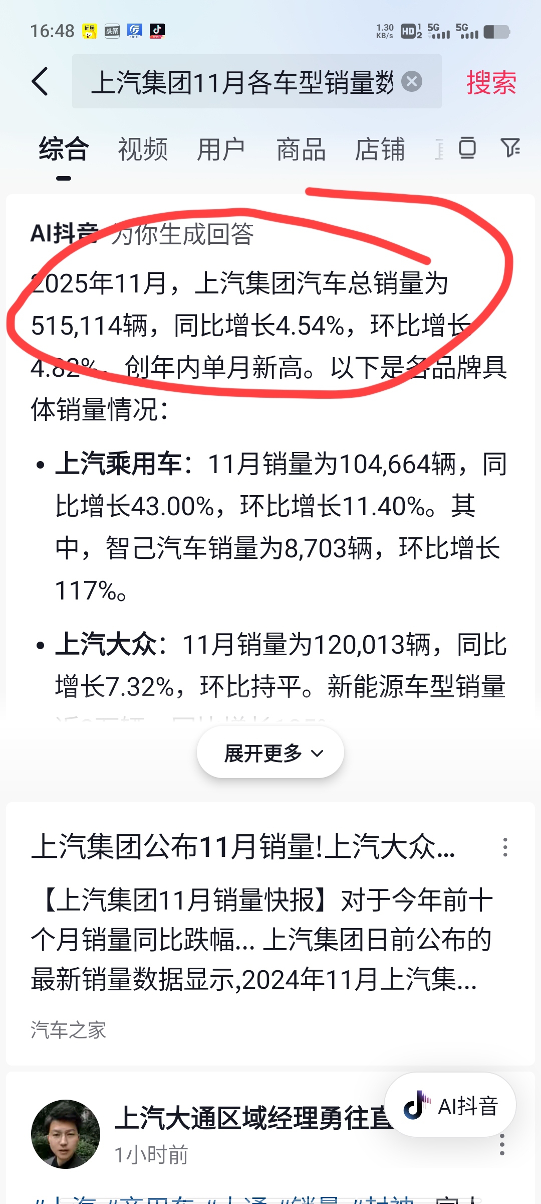 $上汽集团(SH600104)$ 上汽集团,11月销量又创新高,明天能涨停不