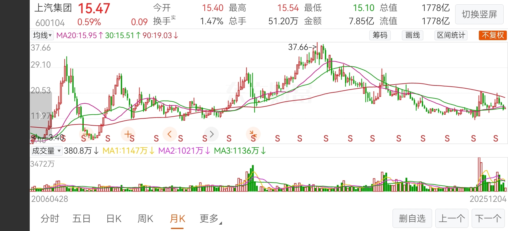 $上汽集团(SH600104)$ 还要跌到什么时候