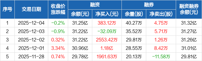 上汽集团:融资余额31.25亿元,创近一年新高(12-04)