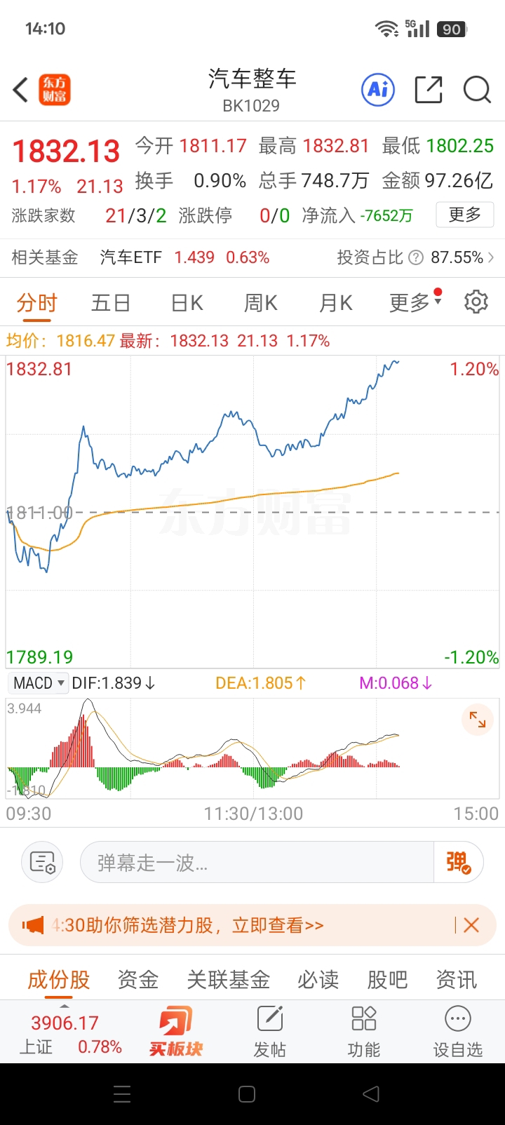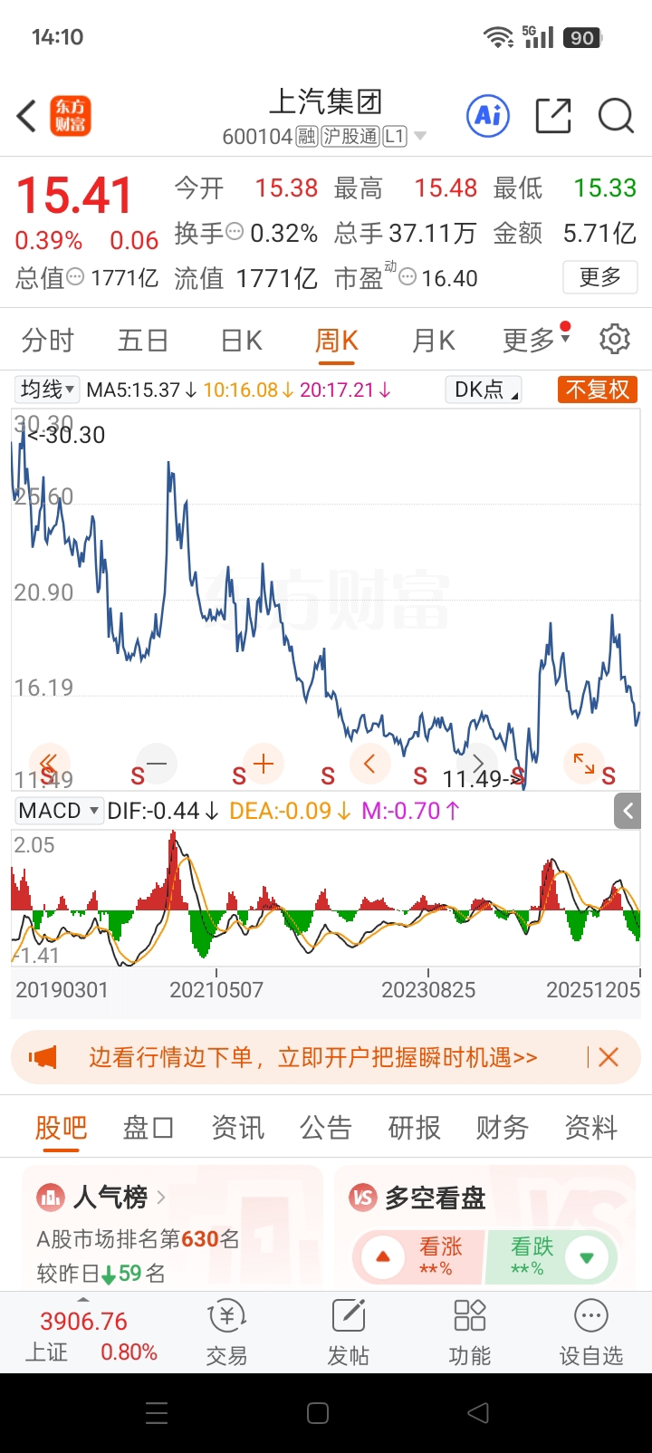 长期落后大盘,长期落后汽车板块,长期落后上证50,说上汽是最烂的上海汽车股,没人