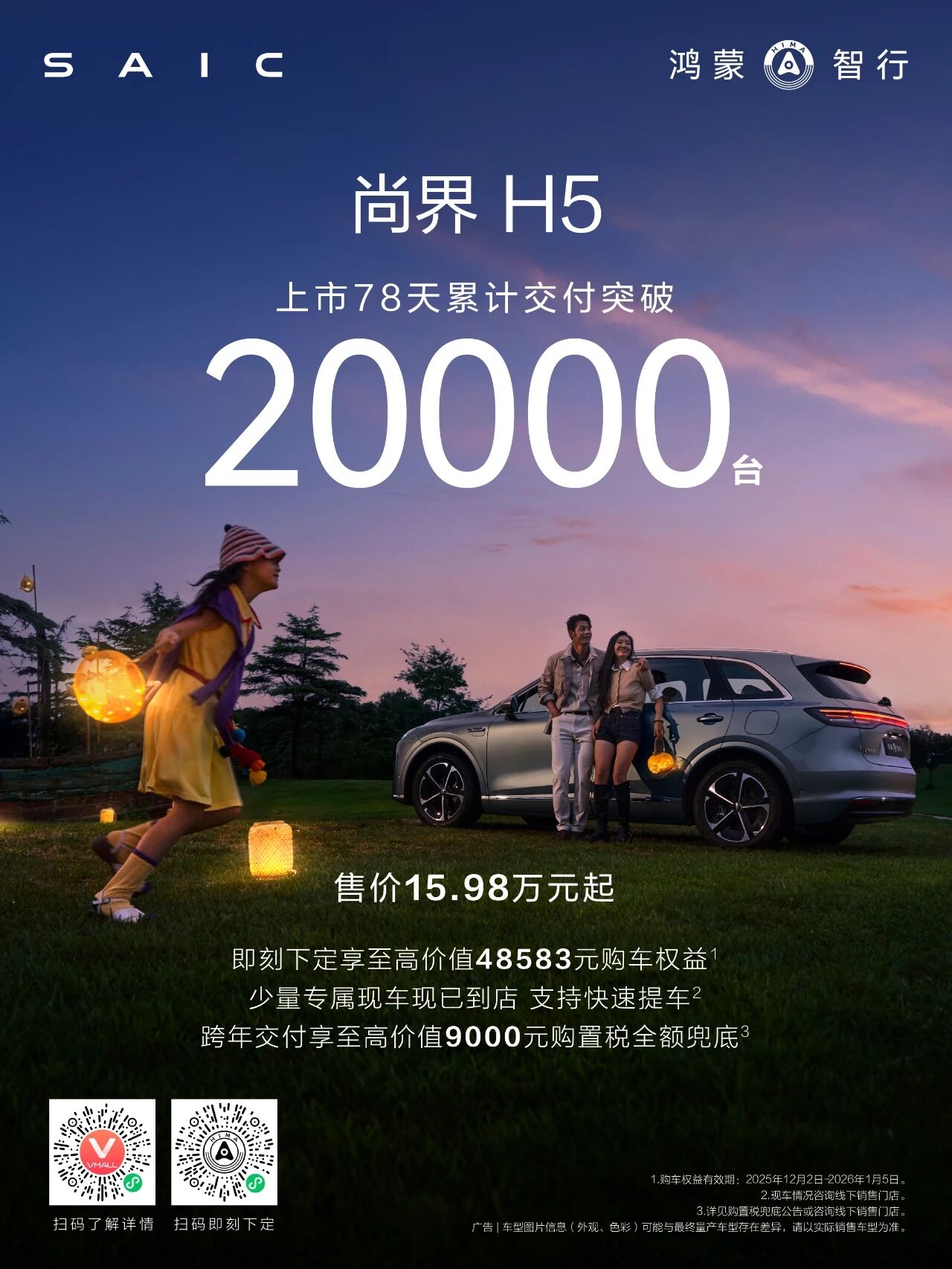 尚界H5累计交付破20000台再“尚”新阶,尚界H520000台交付里程碑达成!