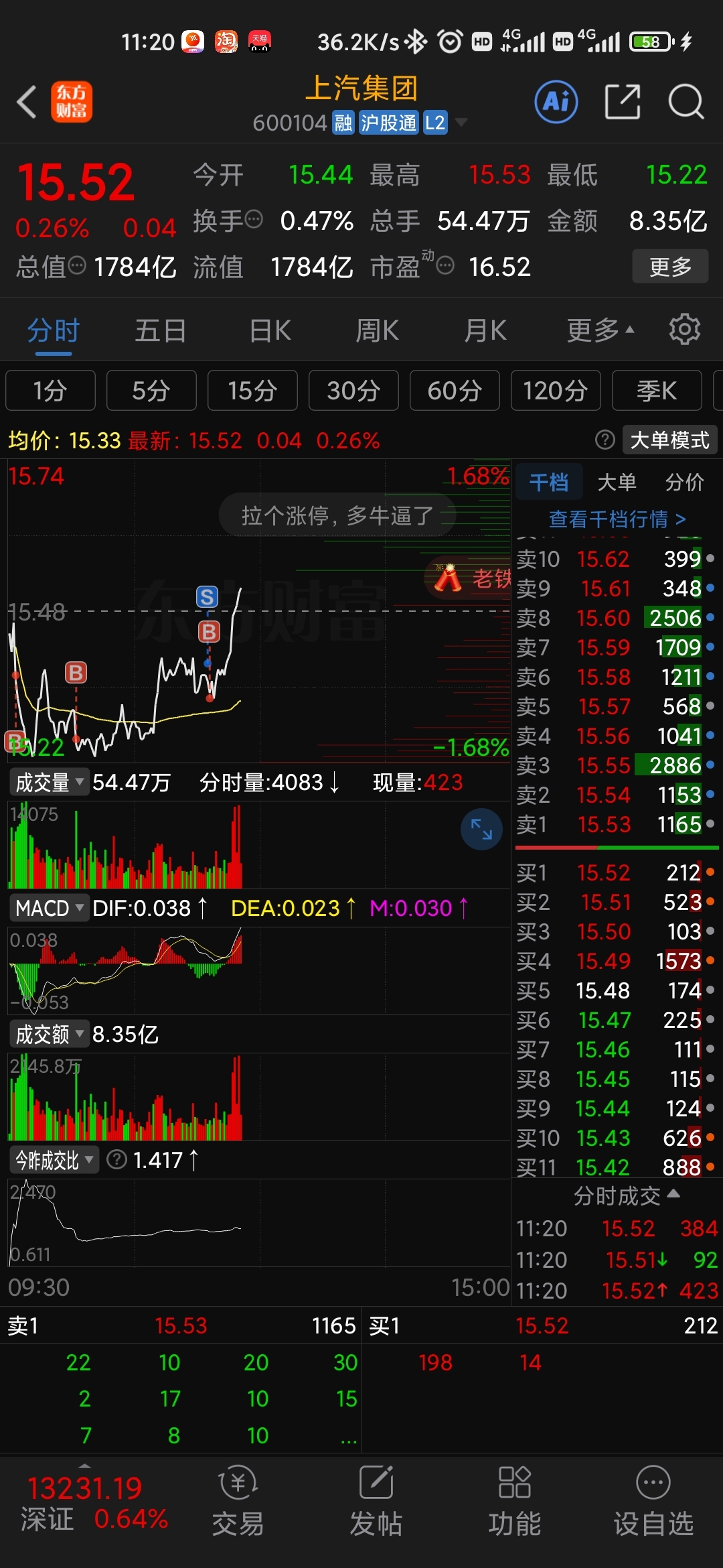 补仓做T玩的开心,我感觉我是上汽解放军,进来还没亏过,时机很重要