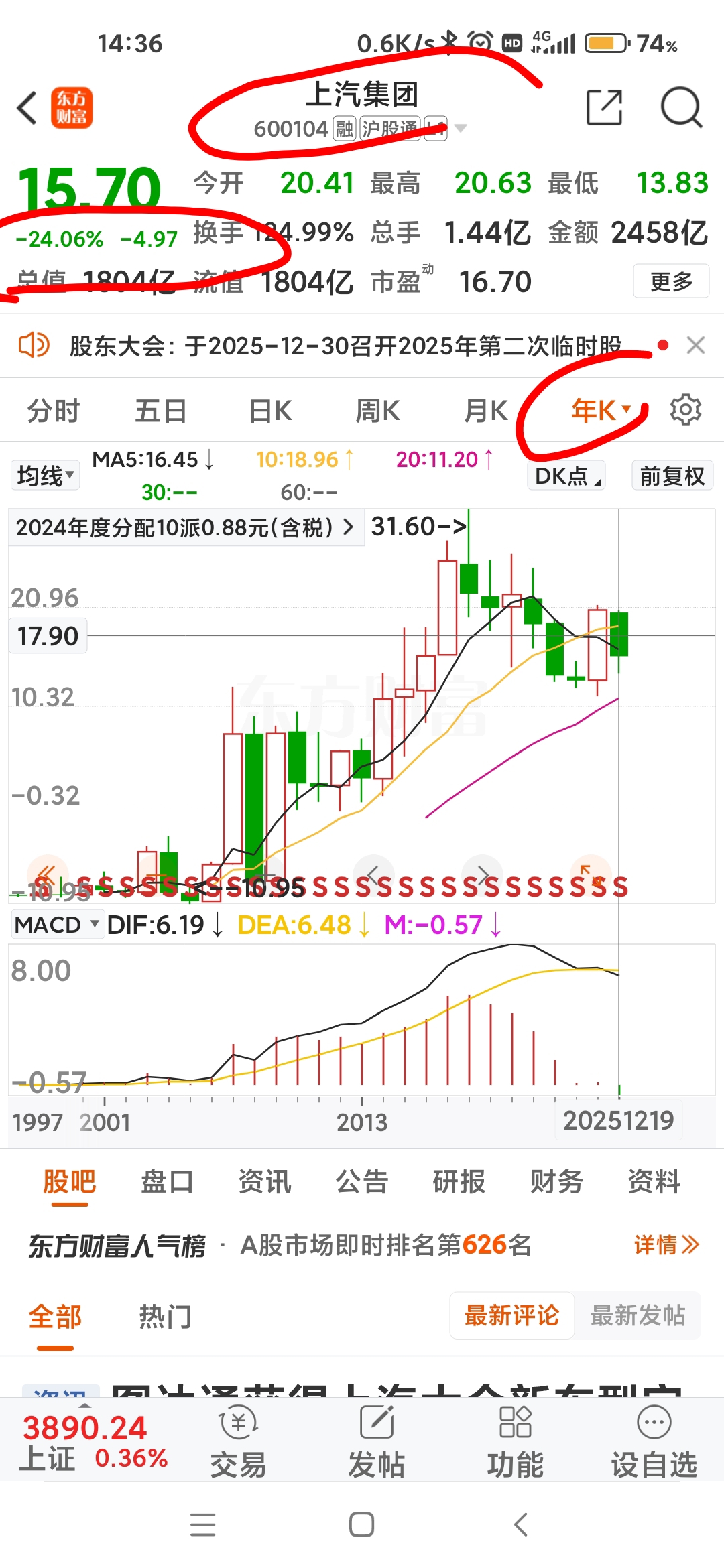 多的不说!上汽年内跌25%已经是板上的事了!而且是在上证创十年新高时实现的!实事