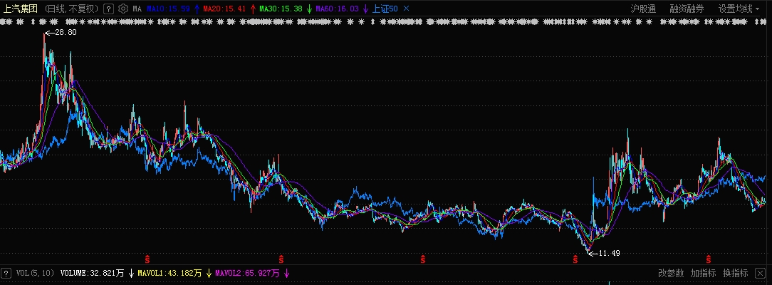 $上汽集团(SH600104)$ 根据近五年的K线图叠加,基本上跟上证50走势重合度非常高,什么利好利空都是虚的,基本没啥主力操作,都是量化和基金还有散户在博弈,最近一段时间为什么会跌这么多,主要原因还是实控人减持导致的